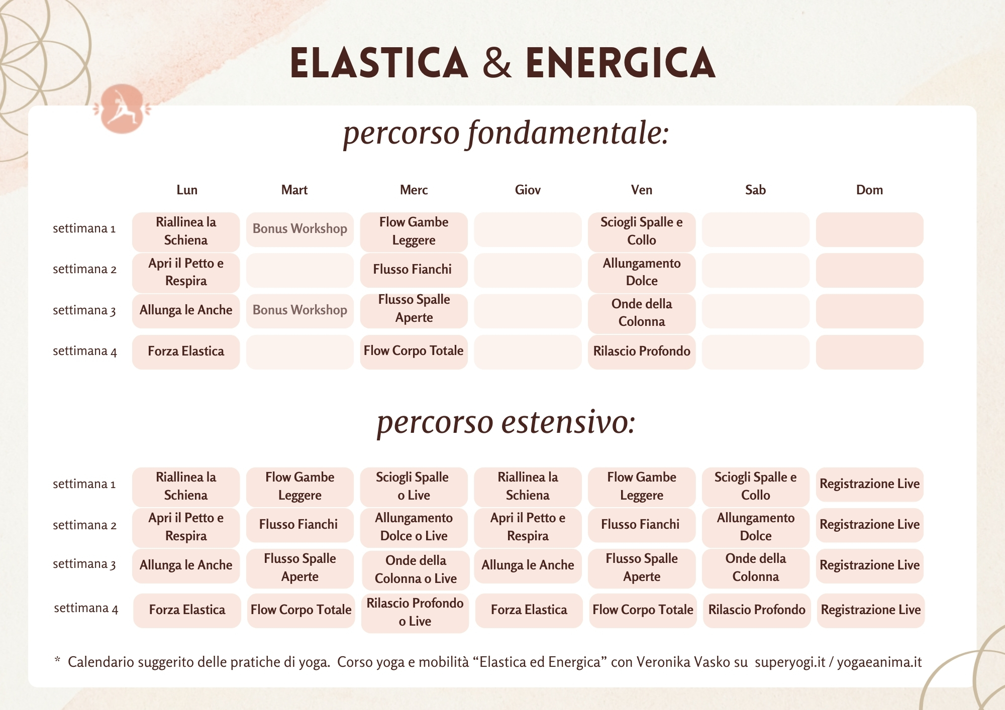 Elastica ed Energica è incluso per tutti gli abbonati a SuperYogi come programma del mese di settembre. Basta accedere alla piattaforma per trovare il corso disponibile e iniziare subito.